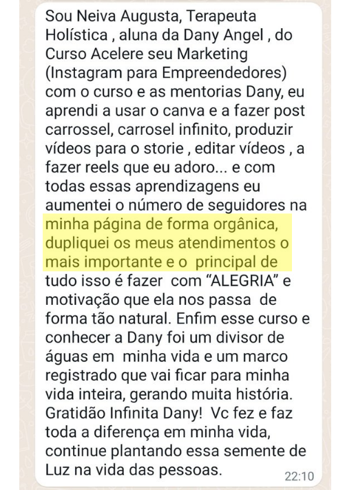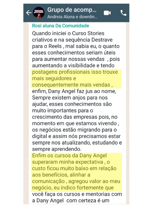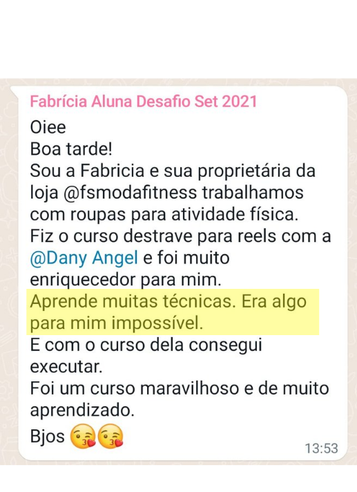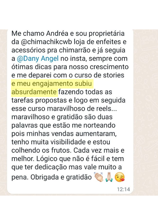 Seja honesta e lembre-se: após o reembolso, você não terá mais acesso ao curso nem ao suporte e nem os grupos. Qualquer dúvida ou dificuldade envie um e-mail contato@danyangel.com.br